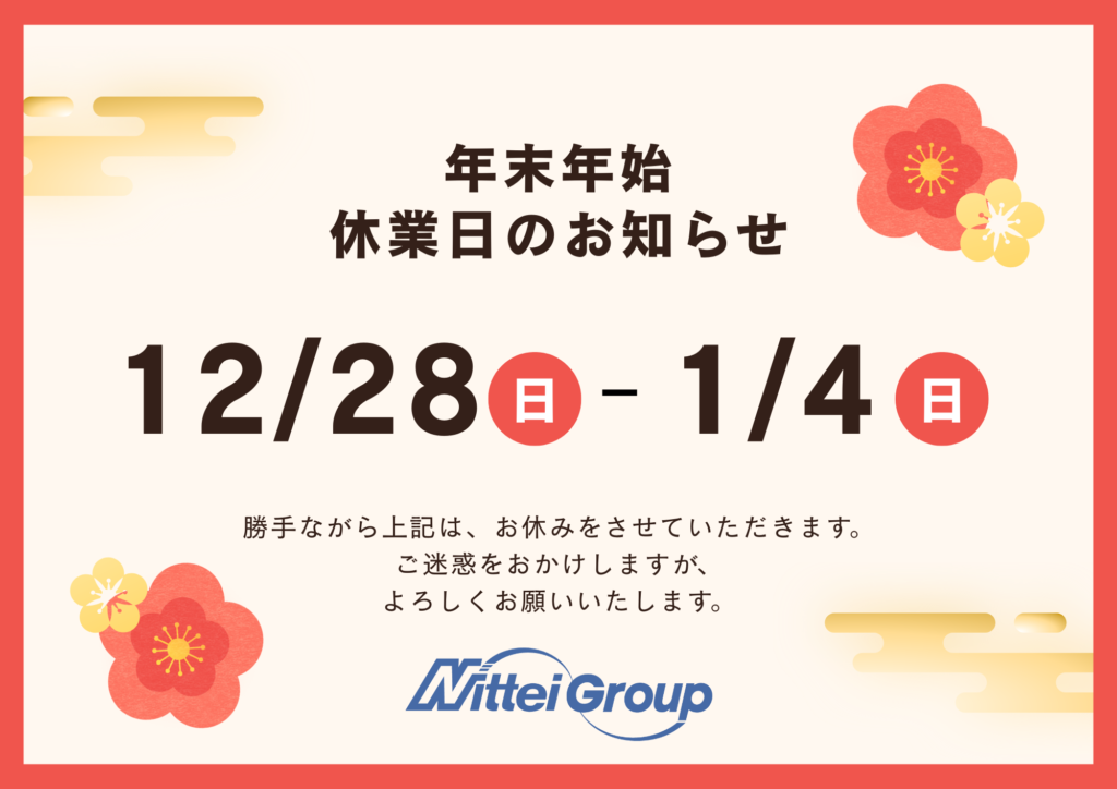 誠に勝手ながら、弊社は2025年12月28日(日)~1月4日(日)の期間休業とさせて頂きます。